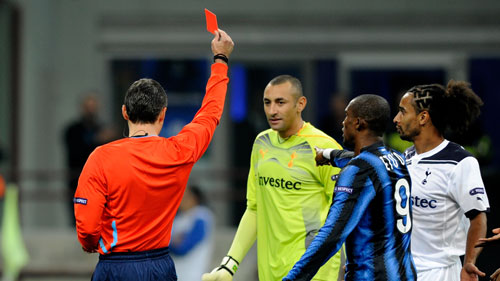 The next match, and by far the most exciting, took place at the San Siro, in Milan. Inter started the match by getting a goal from Javier Zanetti after just 1 minute. A few minutes later, Spurs' keeper Gomes took down Biabiany in the box and was sent off. To add to the troubles, it was also a penalty kick and Samuel Eto'o scored go up 2-0. By halftime, the game was at 4-0. Inter were absolutely cruising in this match and at this point, it was just damage control by Tottenham. Early on in the second half though, Spurs midfielder, Gareth Bale, scored a magnificent goal after making a run over half of the field and then firing low past Julio Cesar. As injury time approached, Bale netted almost an identical goal as his first one to get the game back to 4-2. Soon after that, he finished his hat trick by netting his third. Unfortunately for Spurs, there was only one minute left in the game after Bale's last goal, and Inter just held out to get the win. It was a wonderful hat trick by the young Welshman, and Spurs have to be happy with the result in the end. They will get Inter at White Hart Lane in just a fortnight, with a full squad and their star players, Rafael van der Vaart and Luka Modric, back in the lineup.